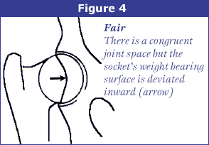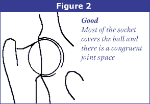 Good (Figure 2): slightly less than superior but a well-formed congruent hip joint is visualized. The ball fits well into the socket and good coverage is present.